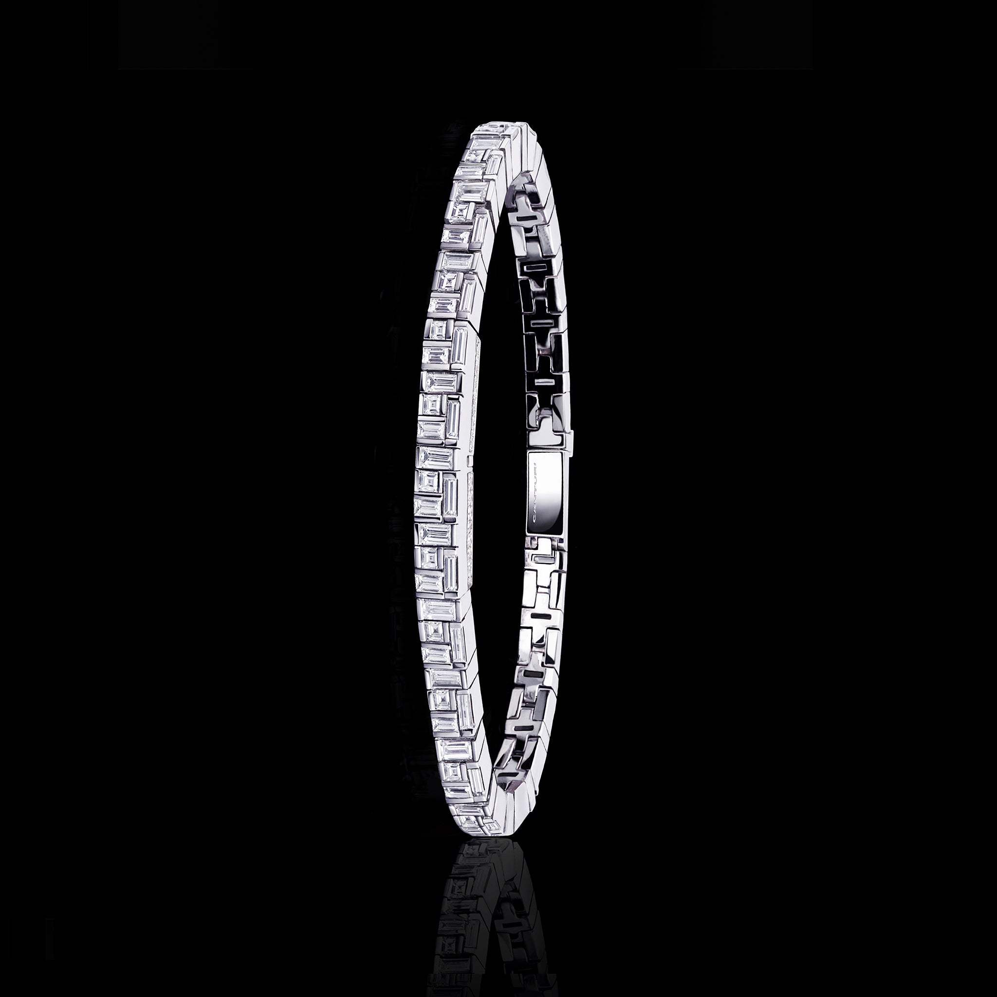 - Bracelet Material: The bracelet is adorned with approximately 5.50ct baguette and carré cut natural diamonds of E-F/VVS-VS quality, emblematic of Canturi's Cubism collection.