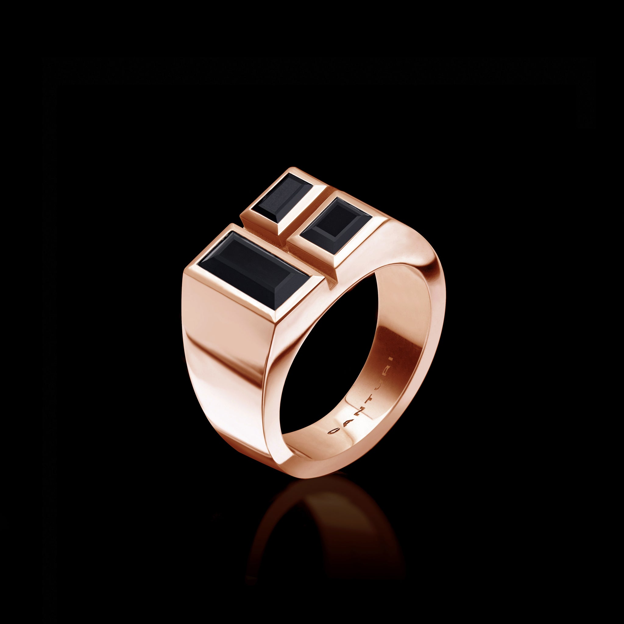 Cubism Signet Ring | Black Spinel Gem & Gold