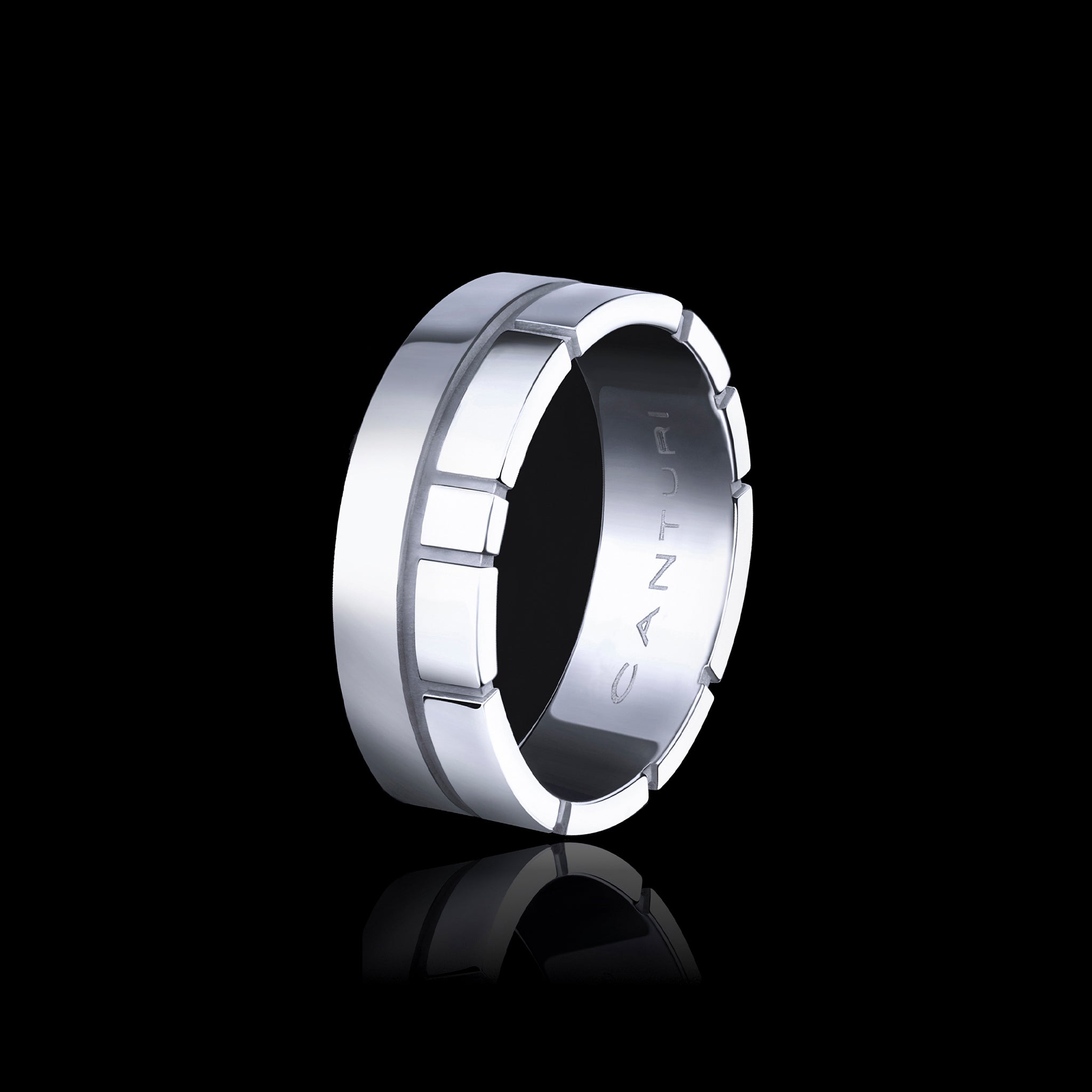 The Canturi Eternal Double Band offers a contemporary expression of enduring symbolism. One band showcases Canturi’s distinctive signature design of varied linear segments, with each panel representing a chapter of life. The second band is defined by a sleek, flat silhouette, in a high-polish finish.