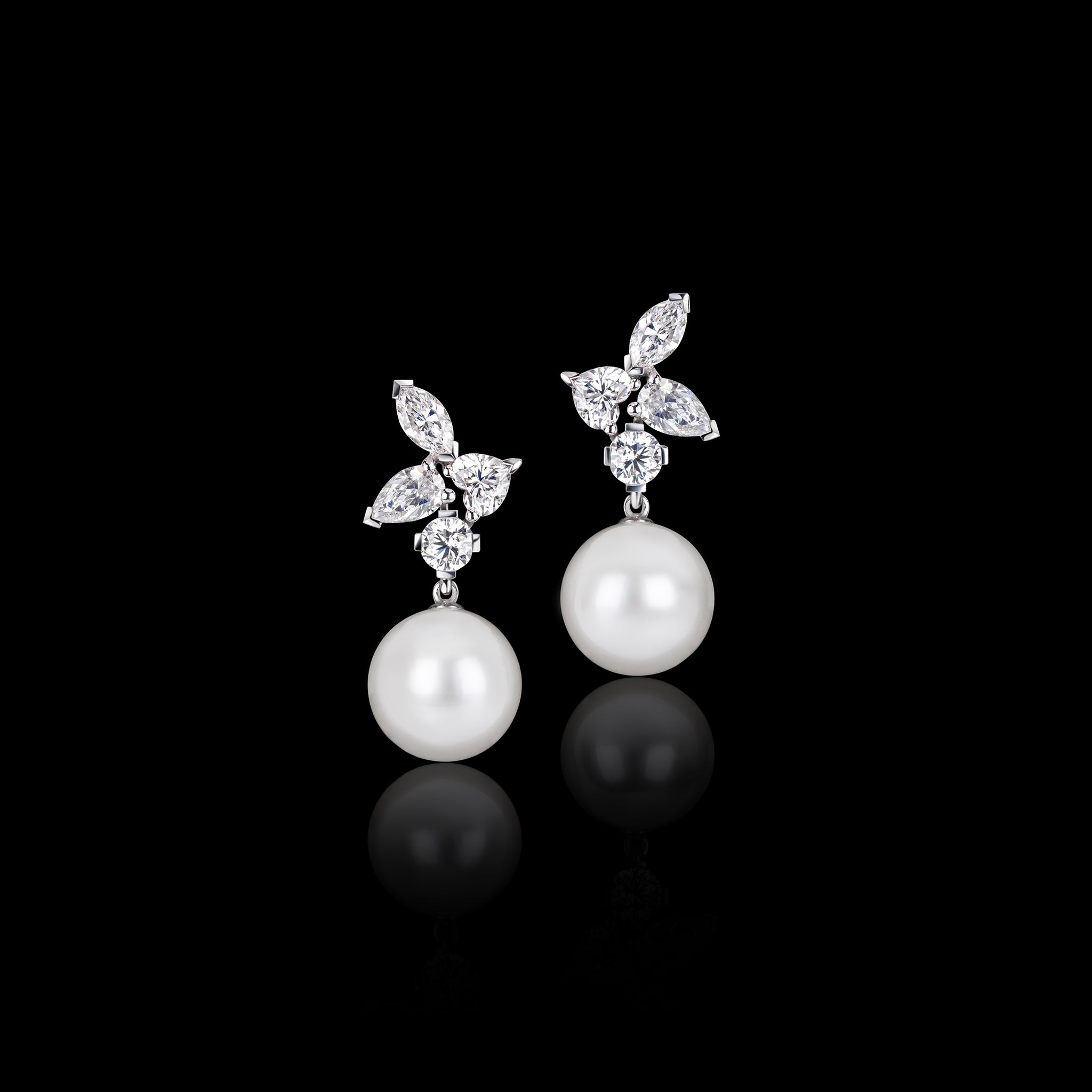 Discover the pinnacle of luxury with the Primavera 5-drop diamond and Australian South Sea pearl earrings. Meticulously crafted in 18ct gold, these exquisite statement earrings showcase luminous round South Sea pearls paired with an arrangement of heart, pear, marquise, and round brilliant-cut diamonds.